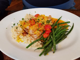 which was too strong to appreciate the broccoli/Brussel sprout/cabbage slaw.