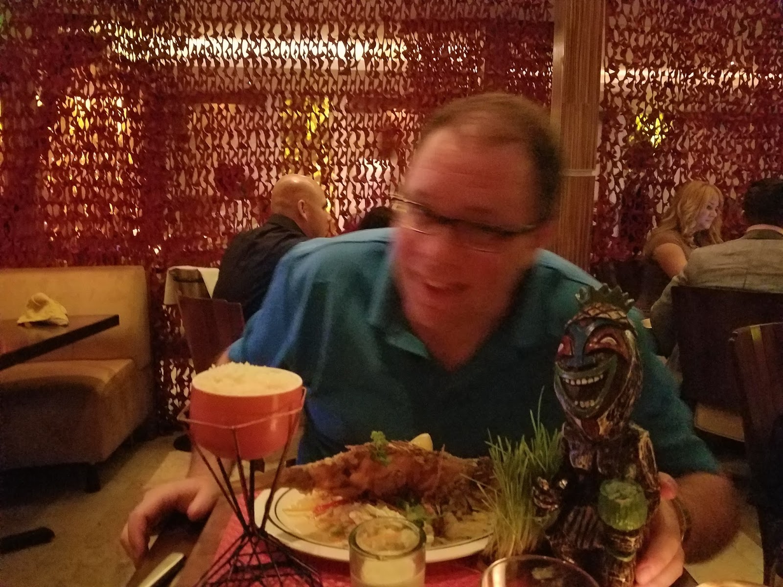 multi-colored baby carrots) and the Polynesian fish fry (crispy whole snapper, served